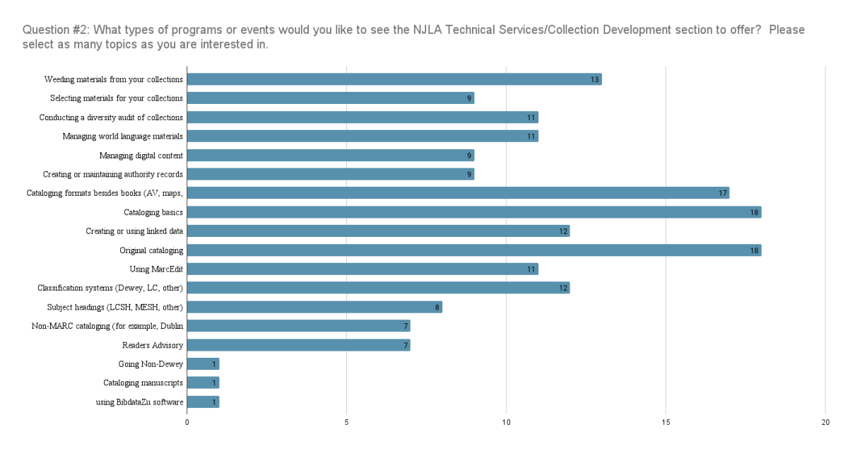 Question #2: What types of programs or events would you like to see the NJLA Technical Services/Collection Development section to offer?  Please select as many topics as you are interested in.
