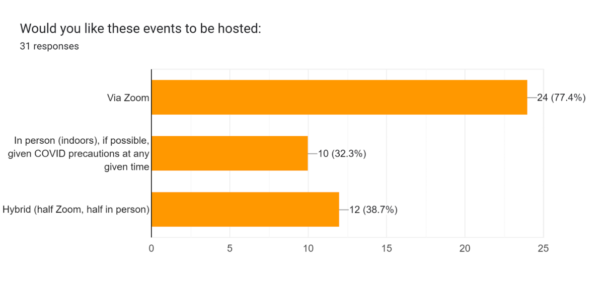 Forms response chart. Question title: Would you like these events to be hosted:. Number of responses: 31 responses.