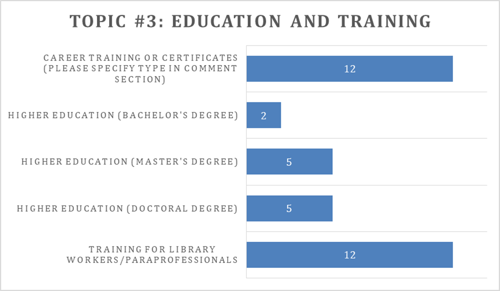 Topic #3: Education and training: Asking what types of training the respondents were interested in learning more about (not their current level of education or training).